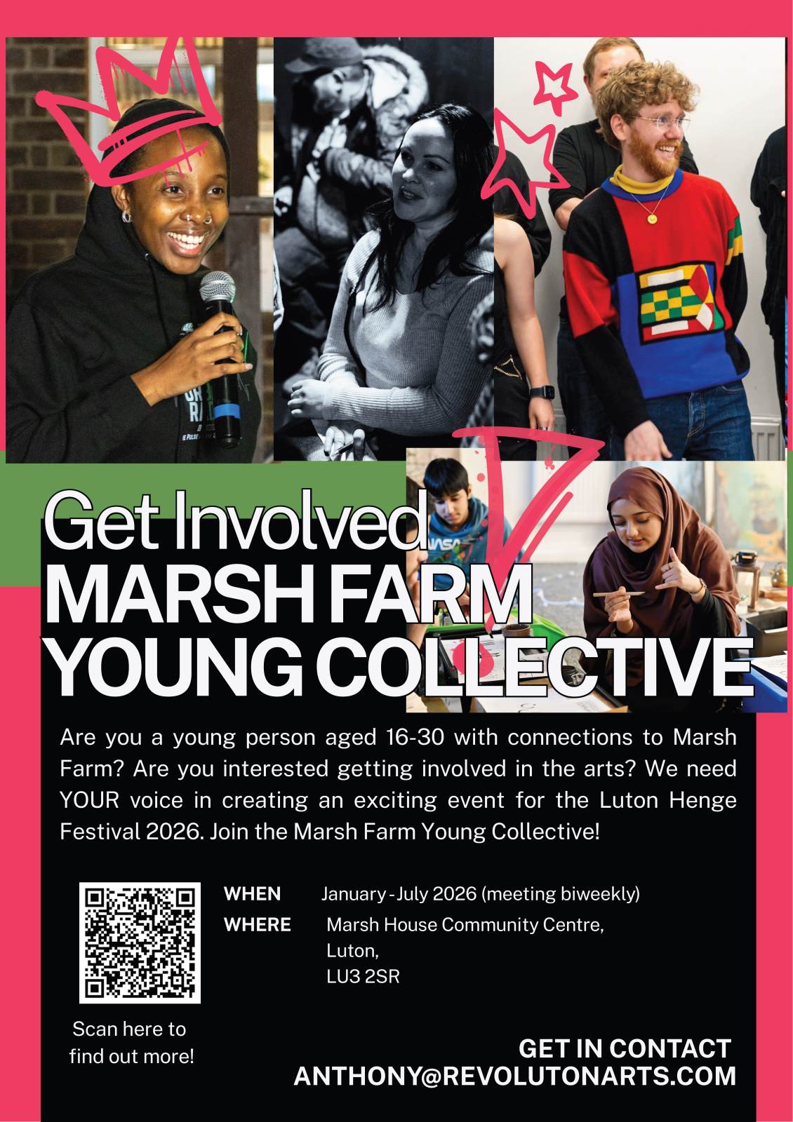 The Collective will work directly with Revoluton Arts to guide the vision, planning, and programming of our major upcoming event: Luton Henge Festival in Summer 2026. Their ideas, perspectives, and lived experiences will directly impact what the community will see, feel, and be part of as the festival takes shape.